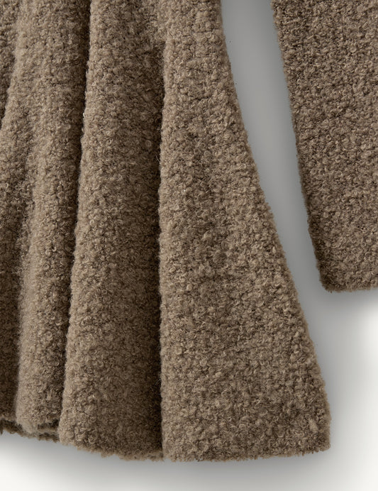 Deze vrouwelijke en moderne knit dress combineert een elegante kraag met knoopsluiting en een zwierige, volumineuze rok. De luxe mix van wol, alpaca en hoogwaardige garens zorgt voor warmte, comfort en een verfijnde uitstraling. Met zijn flatterende pasvorm en tijdloze design is dit een veelzijdige jurk die moeiteloos stijl en draaggemak samenbrengt. Handwas aanbevolen.