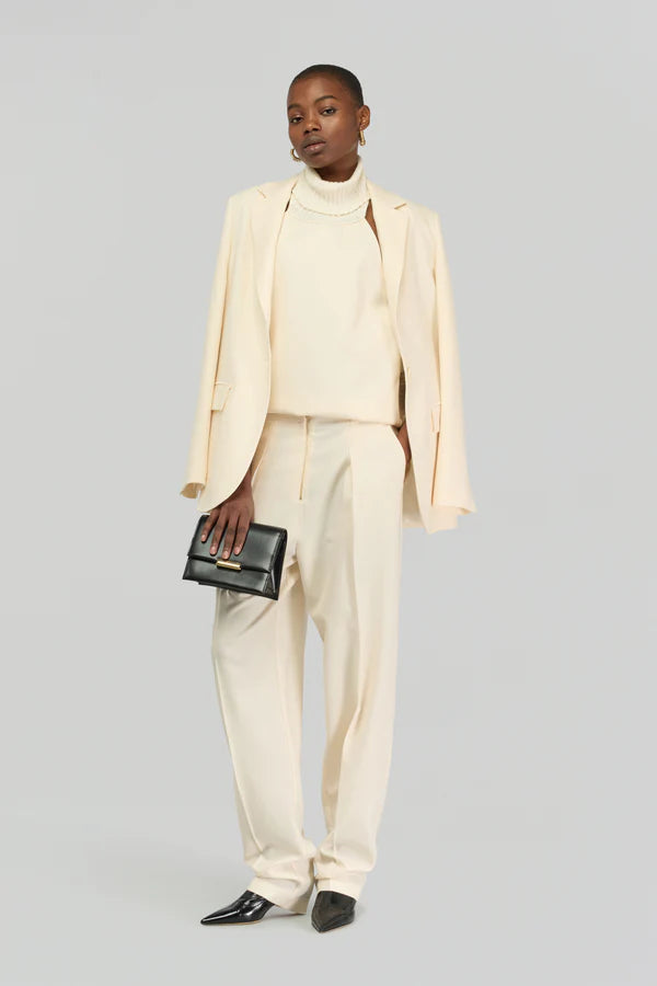 Een flanellen top met een zachte kraag in cashmereblend voor een luxueuze uitstraling. Het model heeft een elegante opening op de rug met knoopsluiting en valt regular fit op heuplengte. Gemaakt in Italië uit hoogwaardige materialen waaronder acetate, polyester, fleece wool en elastane voor comfort en finesse. Regular fit.