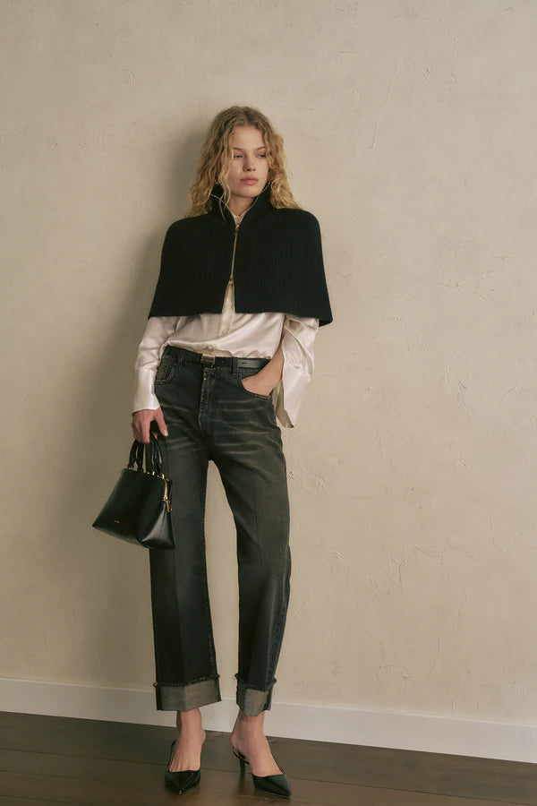 Een dolcevita cape in een luxe wolmix met een stijlvolle frontzip opening voor een moderne, verfijnde look. De regular fit en borstlengte zorgen voor een elegante pasvorm die moeiteloos kan worden gelaagd en zowel chic als casual te dragen is. Gemaakt in Italië van 80% wol en 20% polyamide voor warmte, kwaliteit en comfort. Regular fit.